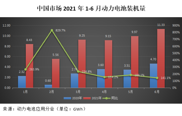 动力电池应用分会数据显示,今年1-6月,中国市场新能源汽车产量约为118.98万辆,同比增长238.19%;动力电池装机量约为53.67GWh,同比增长206.88%。